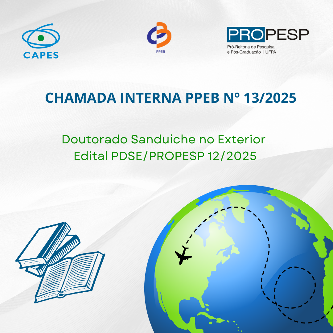Chamada Pública nº 13/2025 para os(as) discentes do Programa de Pós-Graduação em Currículo e Gestão da Escola Básica (PPEB) regularmente matriculados no Curso de Doutorado que tenham interesse em participar do Edital PDSE/PROPESP no. 12/2025 no âmbito do PROGRAMA DE DOUTORADO SANDUÍCHE NO EXTERIOR |PDSE CAPES EDITAL 17/2025, que tem como disposição selecionar doutorandos para fomentar o intercâmbio científico e a qualificação acadêmica de discentes do Brasil, por meio da concessão de bolsas no exterior na modalidade Doutorado Sanduíche.