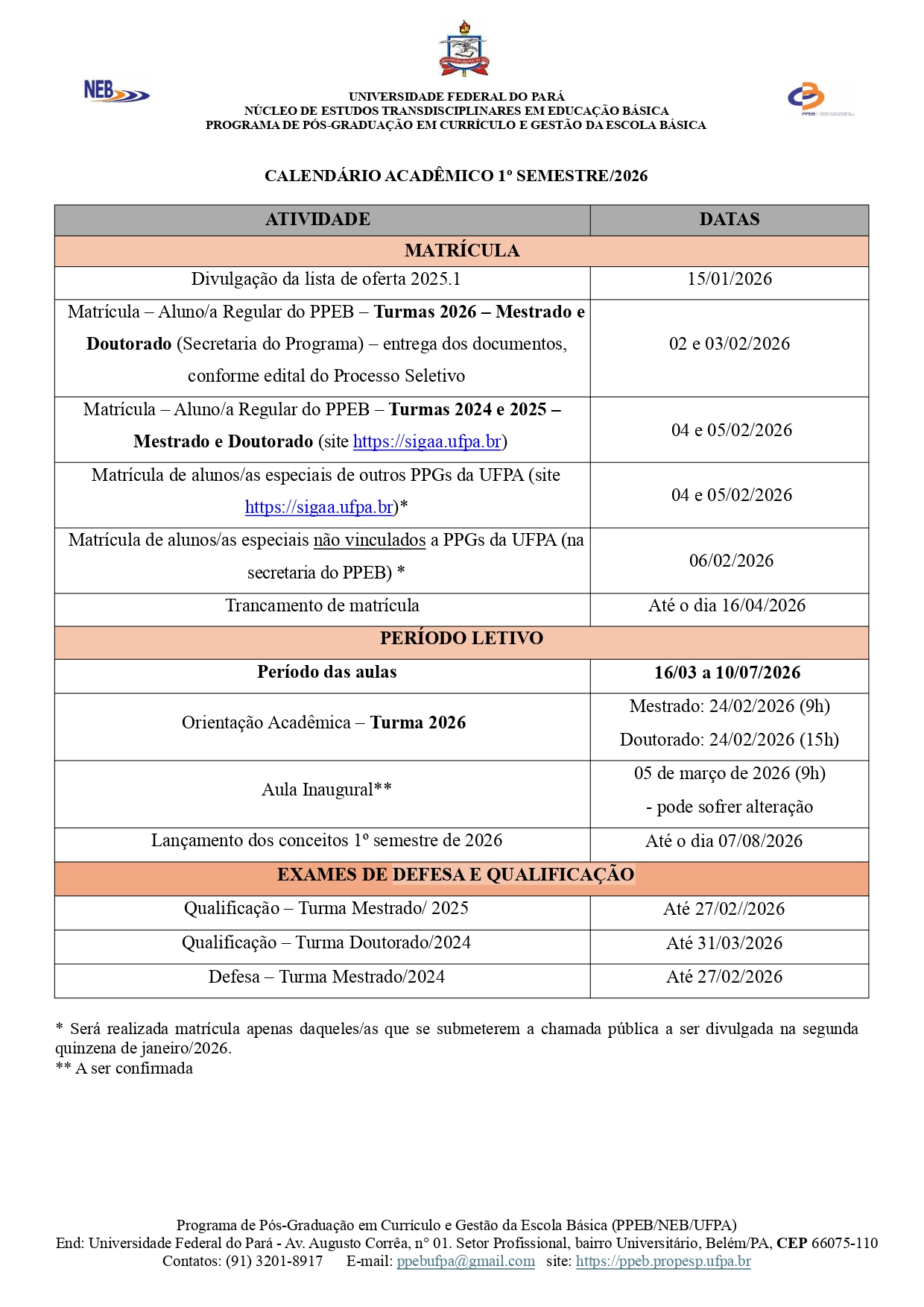 Calendário 2026.1 em PDF - Clique aqui